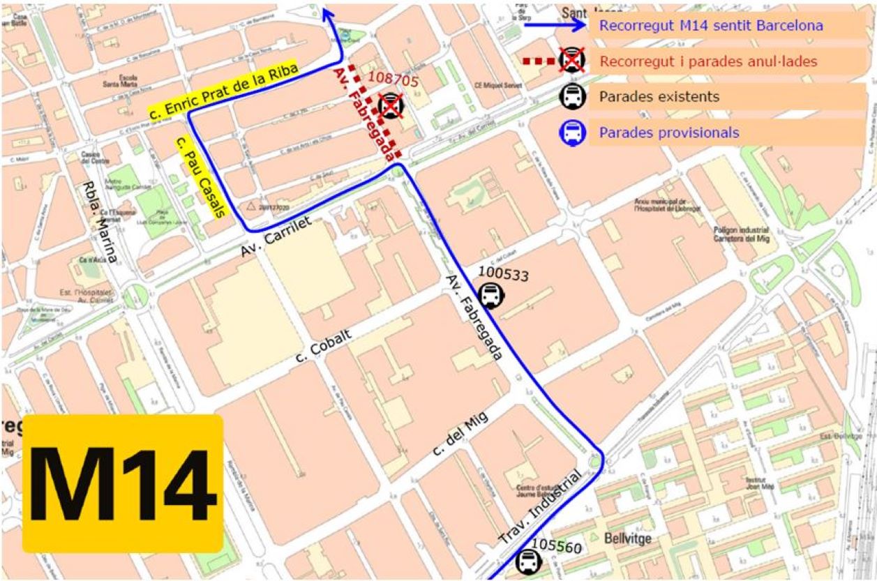 Corte de tráfico en la avenida de la Fabregada de L’Hospitalet