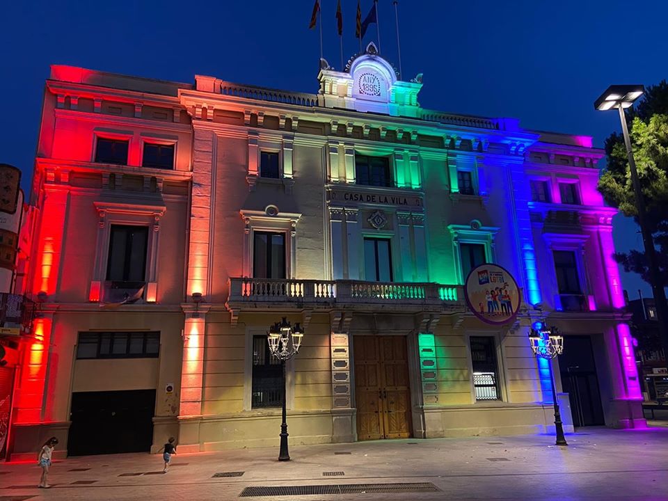 La fachada del Ayuntamiento de L’Hospitalet se iluminó con el arco iris