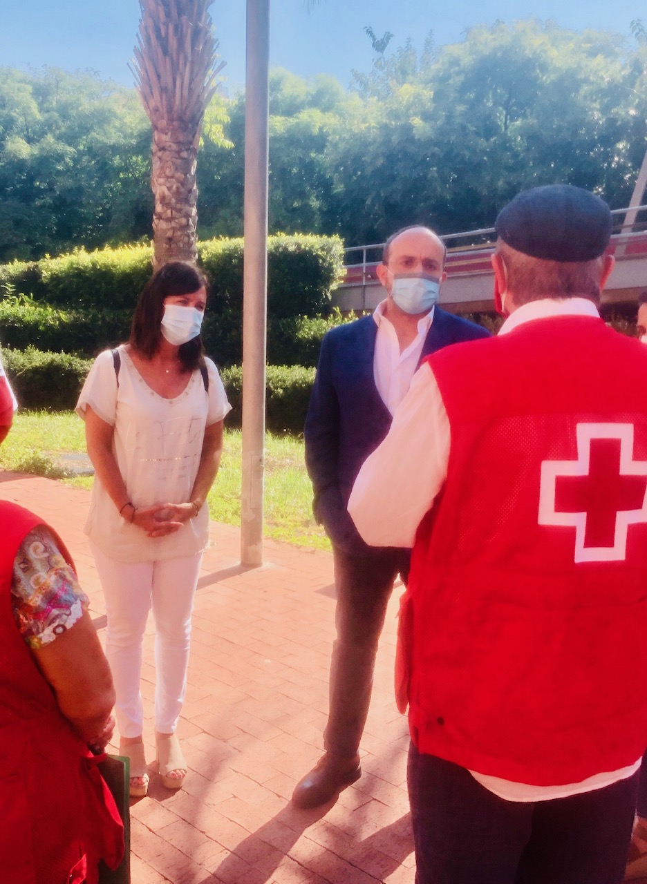 El Presidente del PP de Catalunya, Alejandro Fernández, visita el centro de distribución de alimentos de Cruz Roja en L’Hospitalet