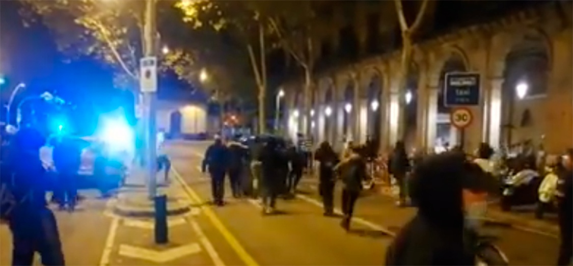 Un policía nacional pateado en Madrid. Los manifestantes intentan quemar furgonetas de los Mossos