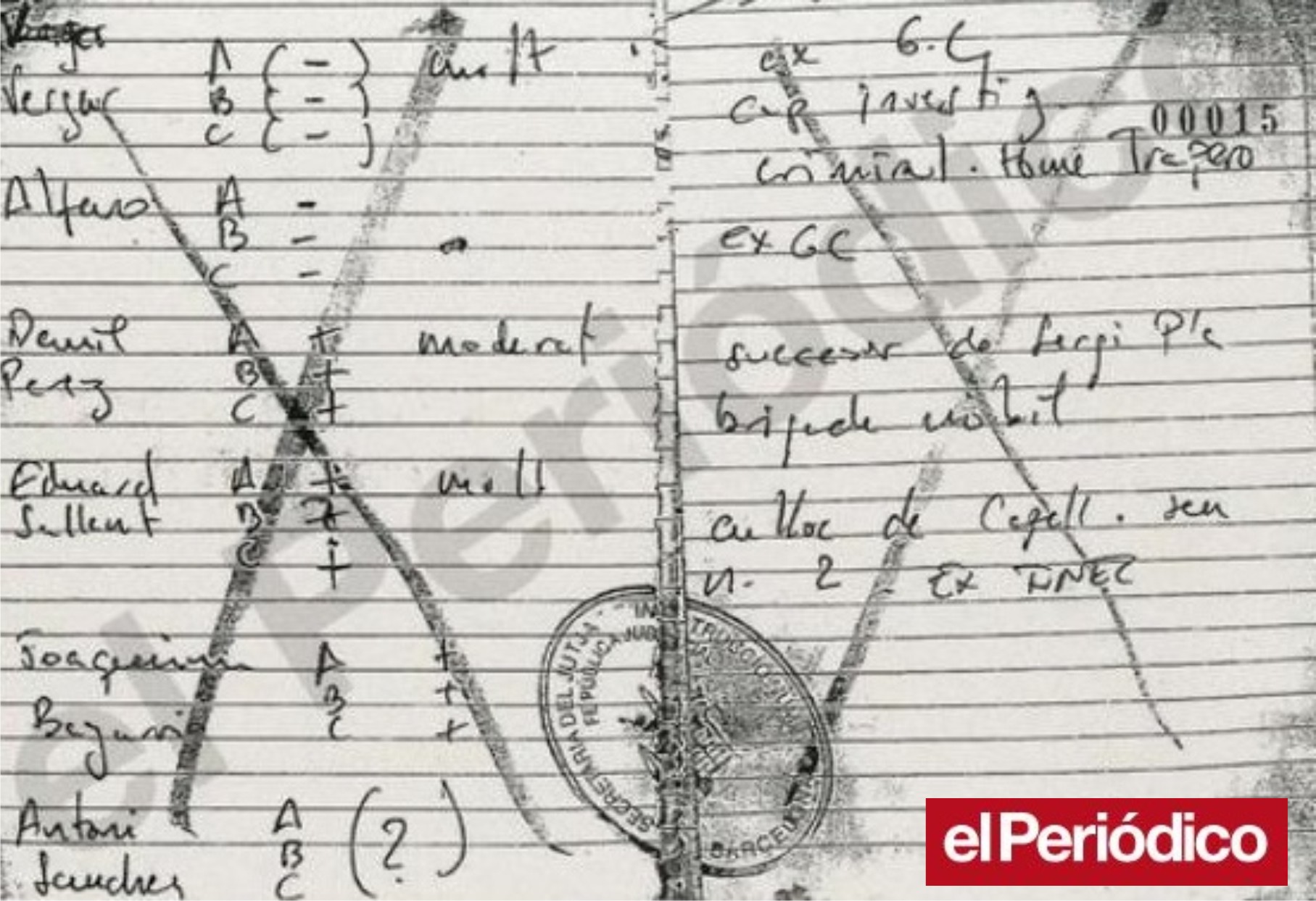 La clasificación hace consideraciones políticas e ideológicas del estilo de «muy españolista», «militante de ERC», «muy rojo», «votante del PP», «familia de Badalona CDC»… Hay anotaciones de carácter personal, sanitario, religioso y sexual: «muy religioso», «Opus», «expareja de, «delante de ella se lio con», «lesbiana», «depresión», «enfermo» y «jodido y enfermo»..