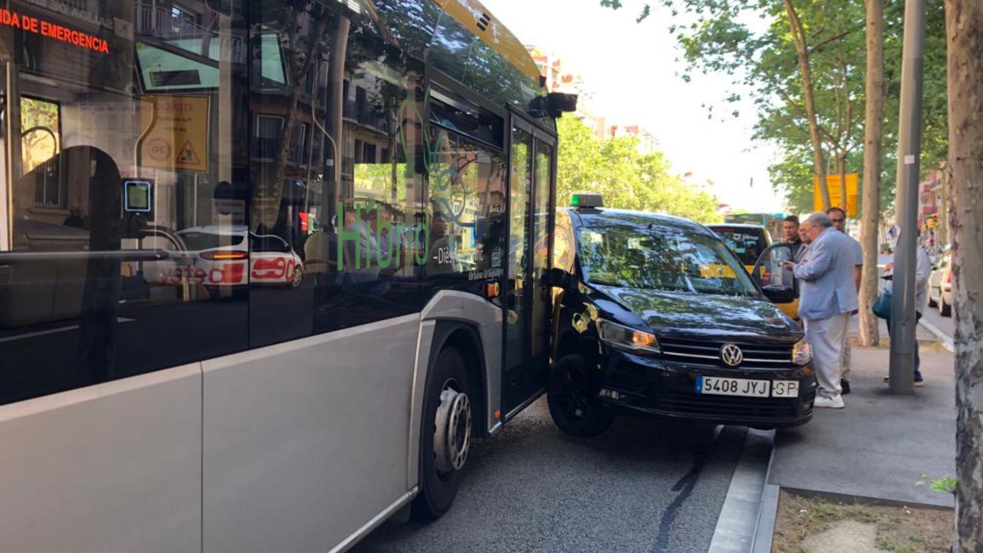 Aparatoso accidente en la Gran Vía de Barcelona al chocar un bus y un taxi