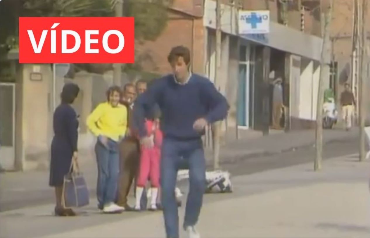 El popular actor Emilio Aragón (Milikito), bailando en la rambla de L’Hospitalet en unas escenas de TVE en los años 80