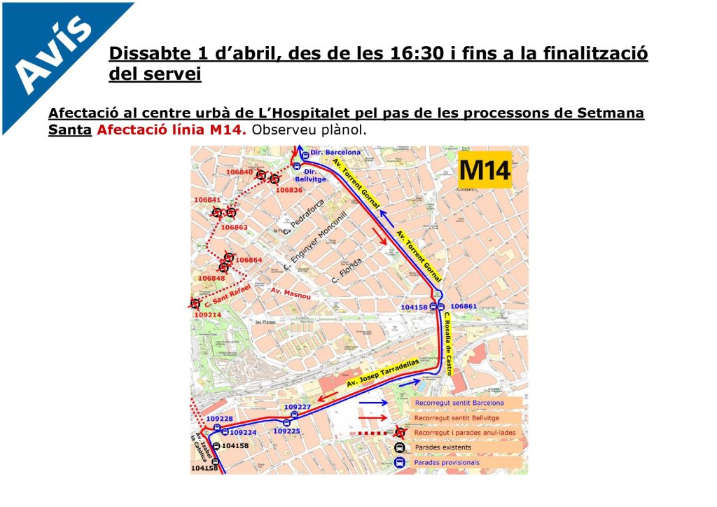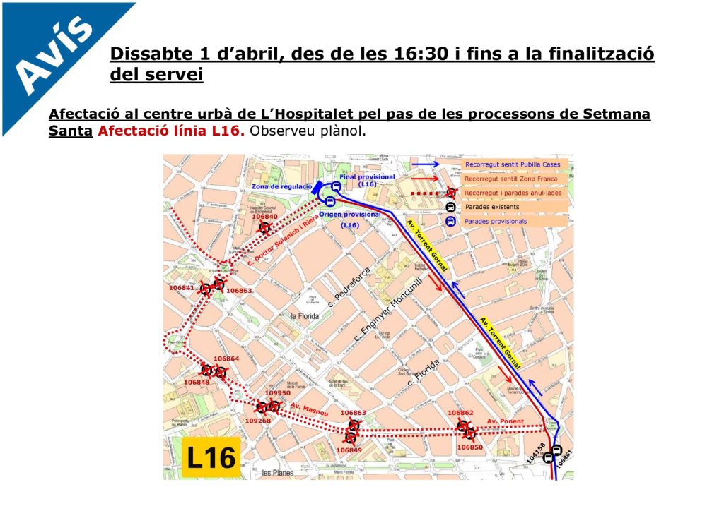 Afectación al centro urbano de L’Hospitalet: cambio de recorrido líneas de Bus, L16, LH1, LH2 y M14