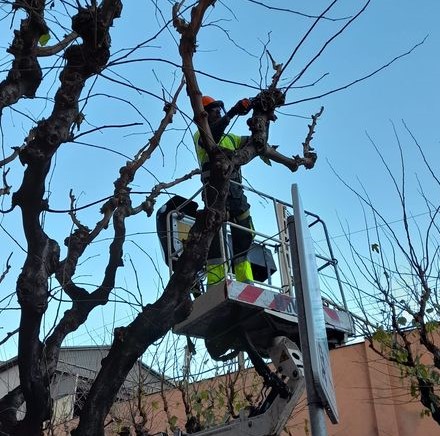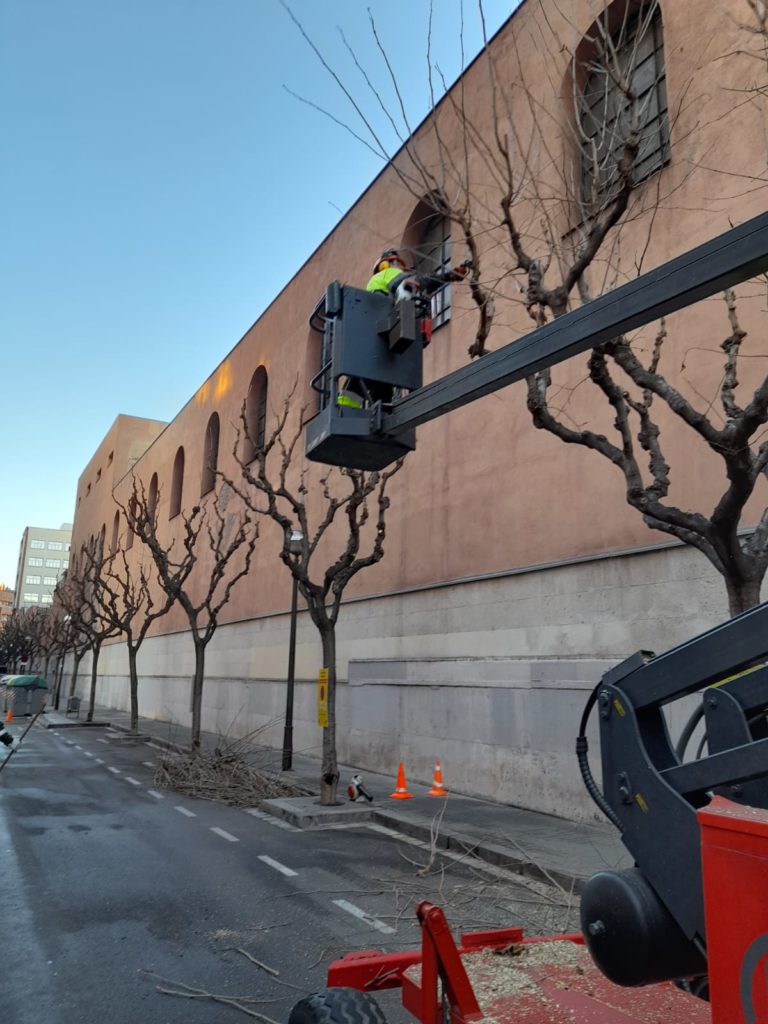 Durante los meses de invierno se hace la llamada poda de espoleada, que consiste en la reducción fuerte de la copa de los árboles situados en espacios insuficientes para su desarrollo, o bien de especias que sistemáticamente han sido objeto de ésta podada y tienen una estructura débil. También, hasta el mes de marzo, se harán en otros ejemplares tareas de reducción equilibrada de la copa, con la supresión de las ramas terminales.