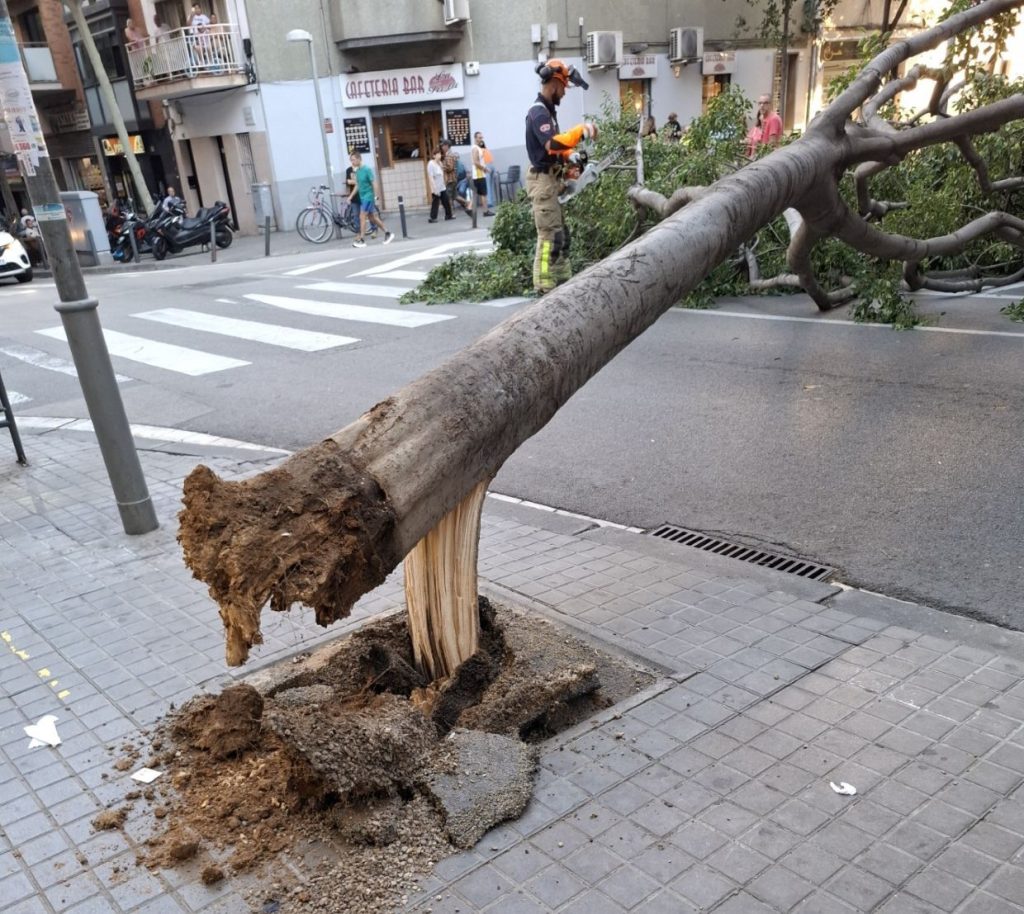 Los Bomberos enviaron una dotación, cortaron el árbol, y los servicios de Parcs i Jardins de L’Hospitalet, se hicieron cargo de los restos arbóreos.