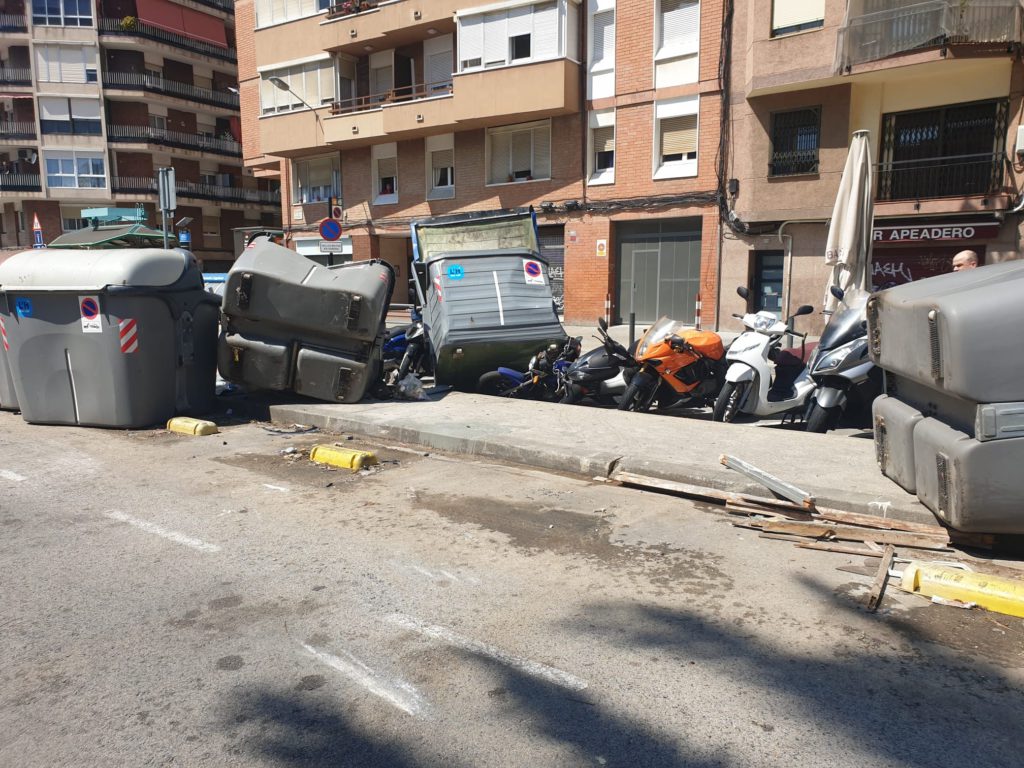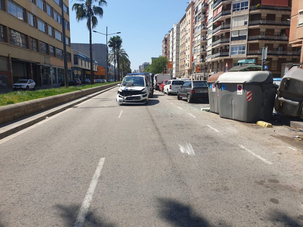 El accidente ocurrió en la Avenida Carrilet, a la altura de la calle Miquel Romeu. Los daños han sido aparatosos, y la imagen del vehículo medio volcado hacía pensar en mayores daños personales.