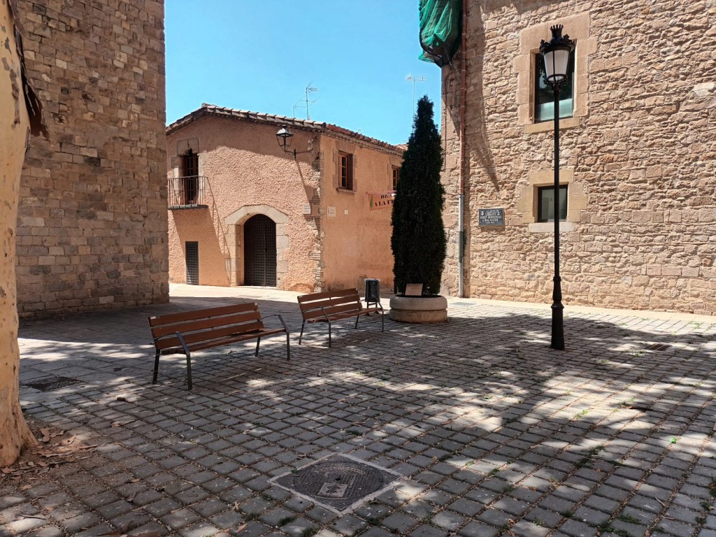 En L’Hospitalet, la plaza de Josep Bordonau, ante el edificio de l’Harmonía, sede del Museu de la Ciutat, es un lugar donde quizás podemos sentir esta sensación de serenidad, en un entorno que nos permite viajar en el reloj del tiempo unos cuántos siglos atrás, cuando la vida iba a otro ritmo, cuando la inmediatez no formaba parte del día a día. Nos sentamos un rato en uno de los bancos de la plaza recientemente rehabilitada, y probamos de pensar.