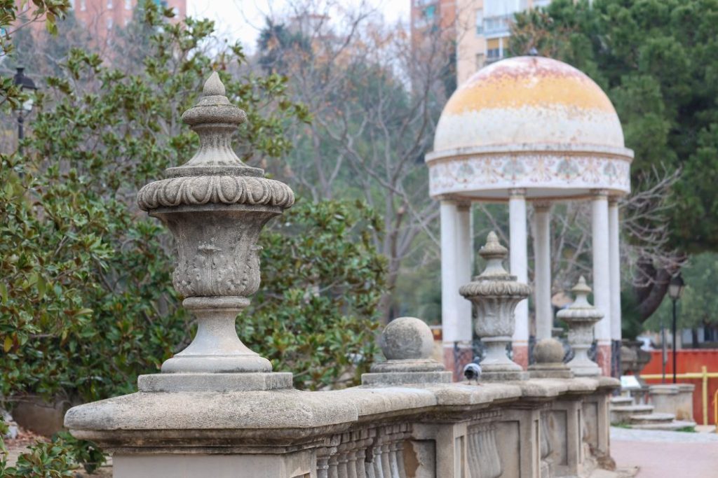 - Restauración de los elementos patrimoniales y arquitectónicos como son las balaustradas del entorno al Palacete, y las fuentes de agua potable. Además, se sustituirán bancos, papeleras y alumbrado del ámbito que se reurbaniza para adecuarlos a las nuevas exigencias en materia de accesibilidad, ergonomía y eficiencia energética.