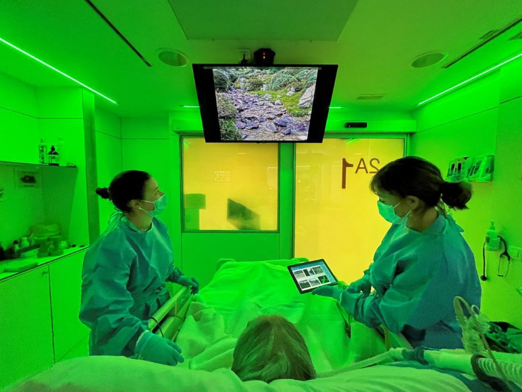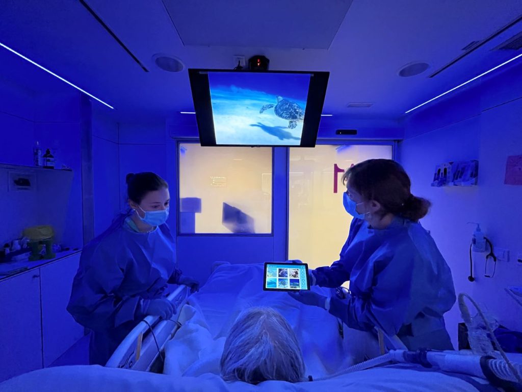 El Hospital Universitario de Bellvitge (HUB) ha transformado los 64 boxes de la Unidad de Cuidados Intensivos (UCI) con la incorporación de elementos sensoriales (luces, proyecciones, sonidos, vibraciones), con el objetivo de conseguir tanto la rehabilitación funcional como cognitiva del paciente crítico. Gracias a la recreación de diferentes escenas, cualquiera de los 64 boxes de la UCI puede convertirse en un bosque, el mar, una nave, un ambiente nocturno tranquilo, o incluso ver fotografías propias de viajes y de recuerdos, para generar experiencias inmersivas adaptadas a las necesidades del paciente ingresado.